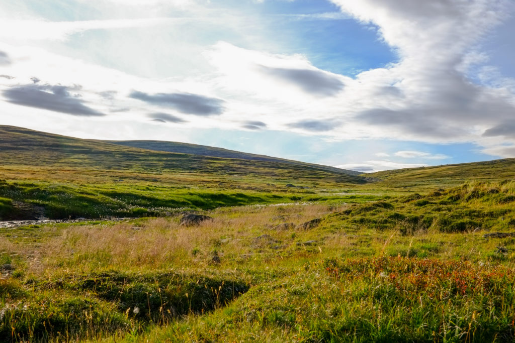 Efter några timmar i skog är jag uppe på kalfjäll igen med riktigt behagligt väder. Så pass behagligt att jag somnar till en stund väldigt lutad (läs: liggandes) mot en sten i solen på första rasten. Jag är nu och går i ett av Sveriges största fågelskyddsområde och jag möter flera pensionärer som är påväg ner efter att ha luftat sina Dakharibyxor och äventyrshattar som jag misstänker bara får se dagsljus i de riktigt fina fågelområdena.